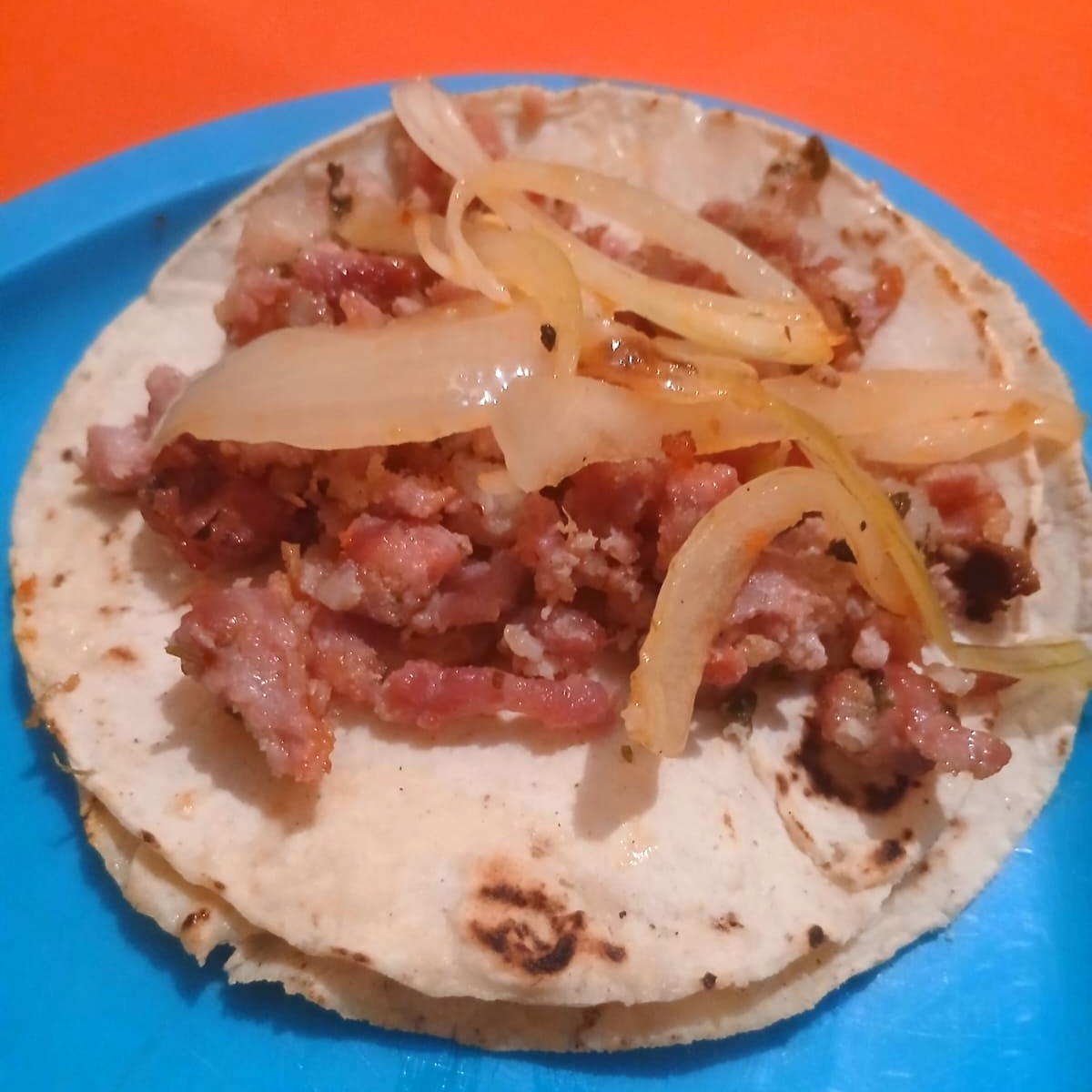 Taco de longaniza con cebolla cocida