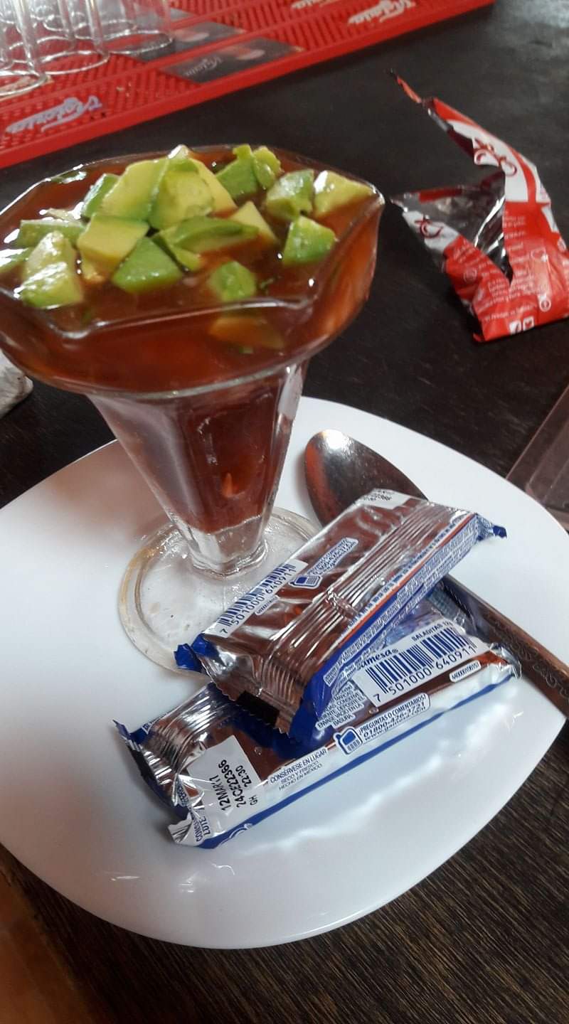 Delicioso cóctel de camarón casero servido en vaso de medio litro.