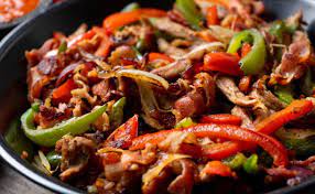 Carne de puerco o res con tocino, pimientos, cebolla y gratinado con queso asadero.