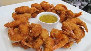 Camarones empanizados con pan molido.