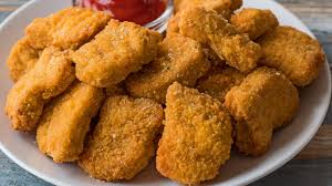 Nuggets de pollo, acompañados de salsa BBQ.