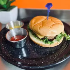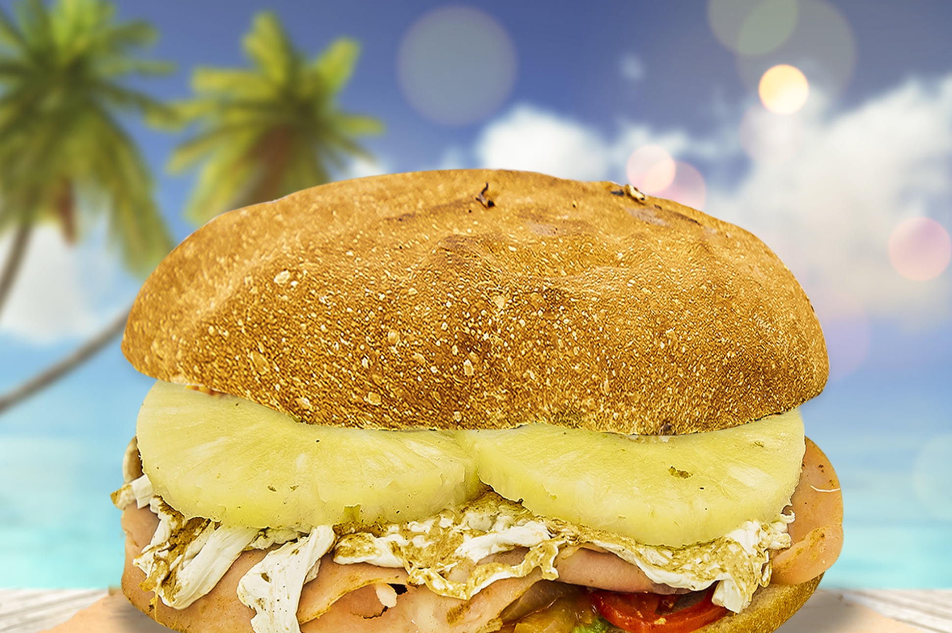 Carne de res, queso amarillo, jamón, piña y salsa BBQ, acompañado de papas a la francesa y bebida a eligir puede ser: Jamaica,. horchata o Coca-Cola.