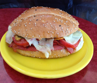 Carne de res, queso amarillo, jamón y vegetales, acompañado de papas a la francesa y bebida a eligir puede ser: Jamaica, horchata o Coca-Cola.