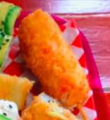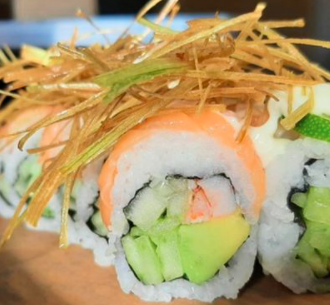 Relleno de Aguacate, Queso Philadelphia, pepino, con topping de Camarón empanizado y spicy mayonesa.