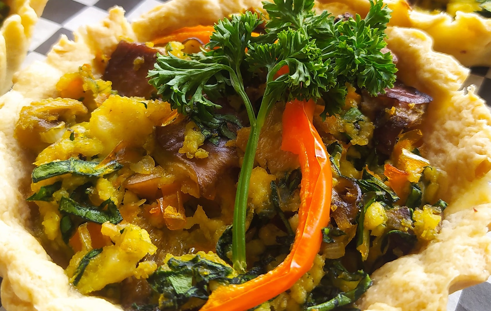 Relleno de Espárrago, Aguacate, espinaca, pepino, cubierto con láminas de aguacate y champiñones sazonados.