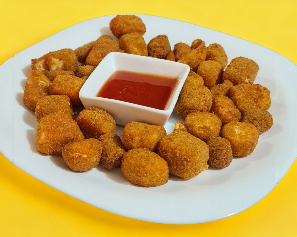 3 Piezas, bolines de arroz, rellenos de Nutella, empanizados.
