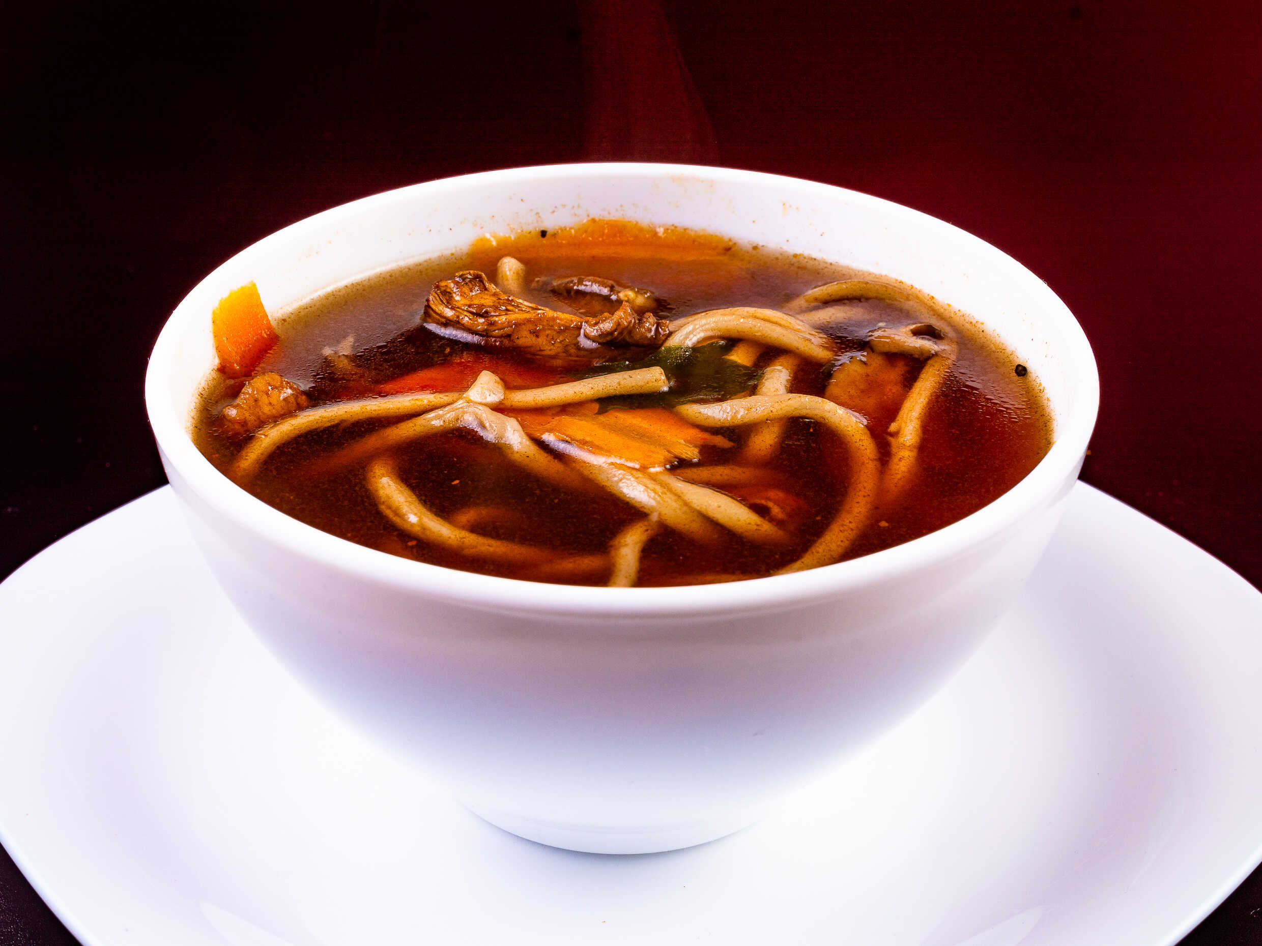 Pasta udon, pollo, shitake, togarashi y cebollín.