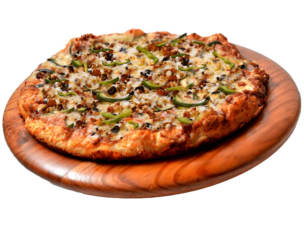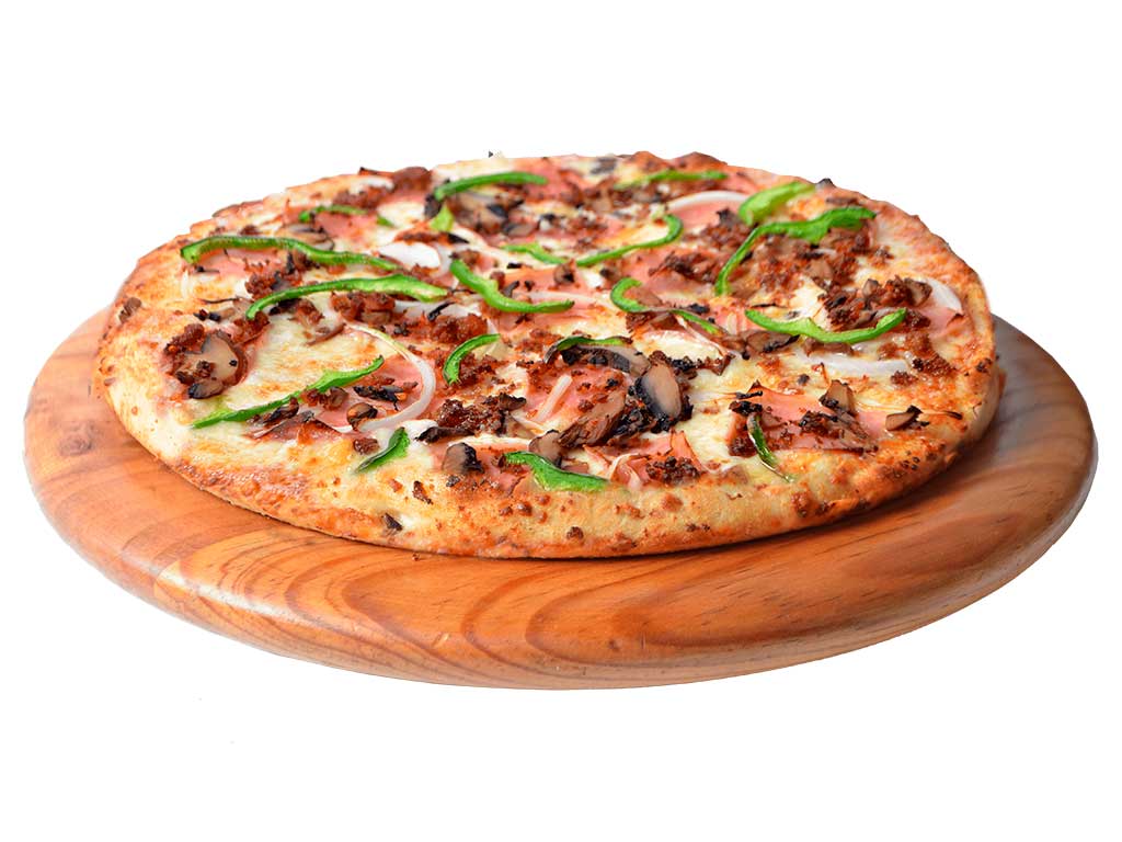 Pepperoni, champiñones, aceitunas negras, salchicha italiana y pimiento morrón. Acompañada de salsa chimichilly 50 ml.