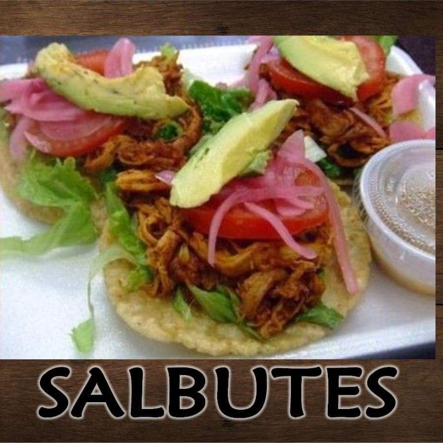 4 pz. Salbutes hechos de masa de maíz fritos, con proteína a elegir (pollo ó carne), lechuga, jitomate, cebolla morada y aguacate.