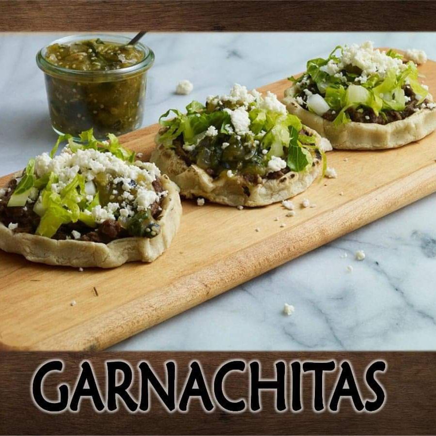 4 garnachitas de masa de maíz fritas, con proteína a elegir (pollo ó carne) lechuga, crema y queso.