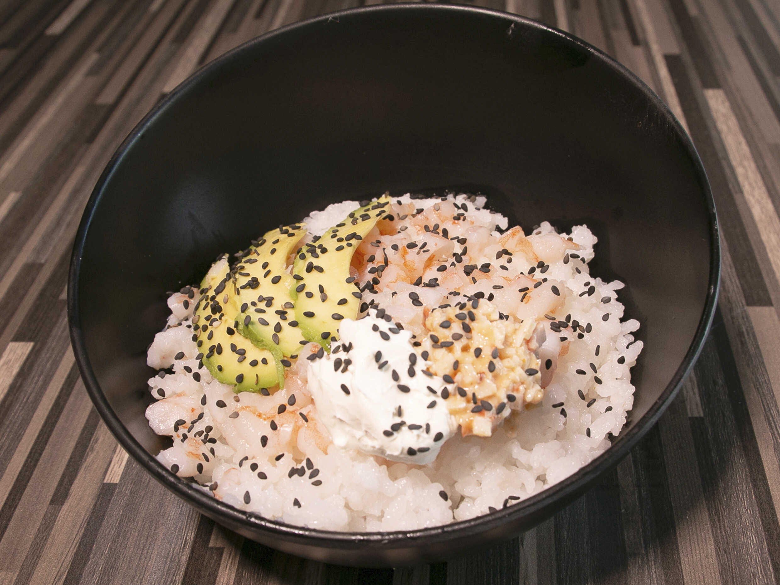 Platillo individual ; Con Arroz blanco al vapor aprox, 250g con Topping de tampico, Aguacate y Philadelphia con Ajonjolí Negro, con una Proteína a elegir.