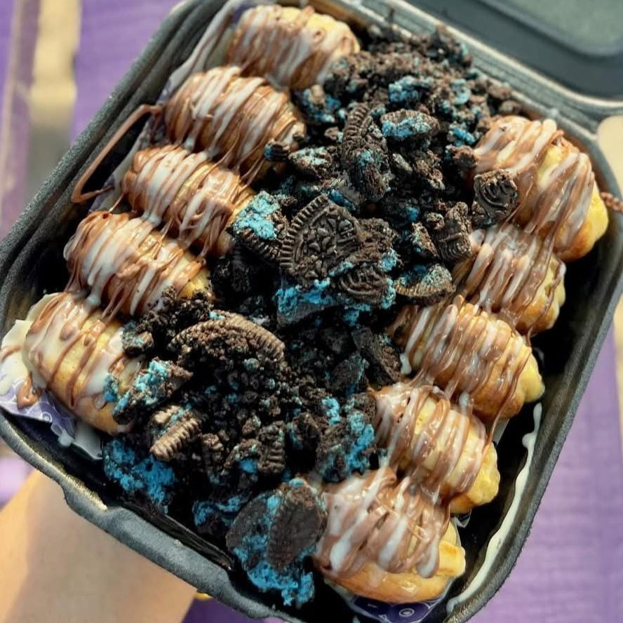 15 minihotcakes xon nutella, lechera, fresa, helado y brbochera de minihotcakes