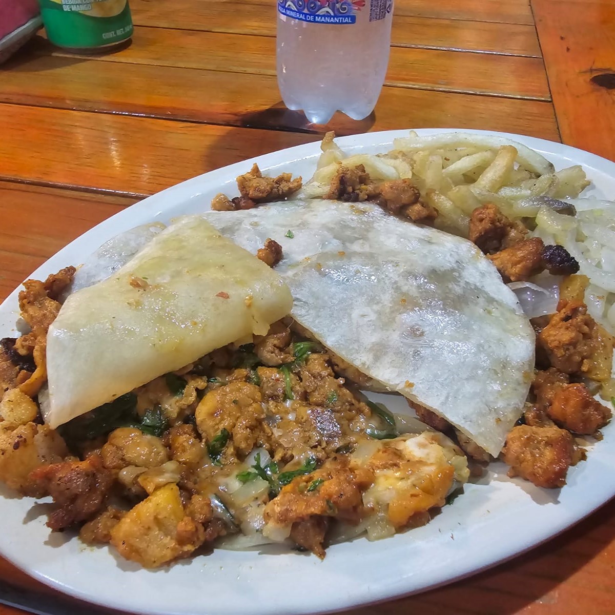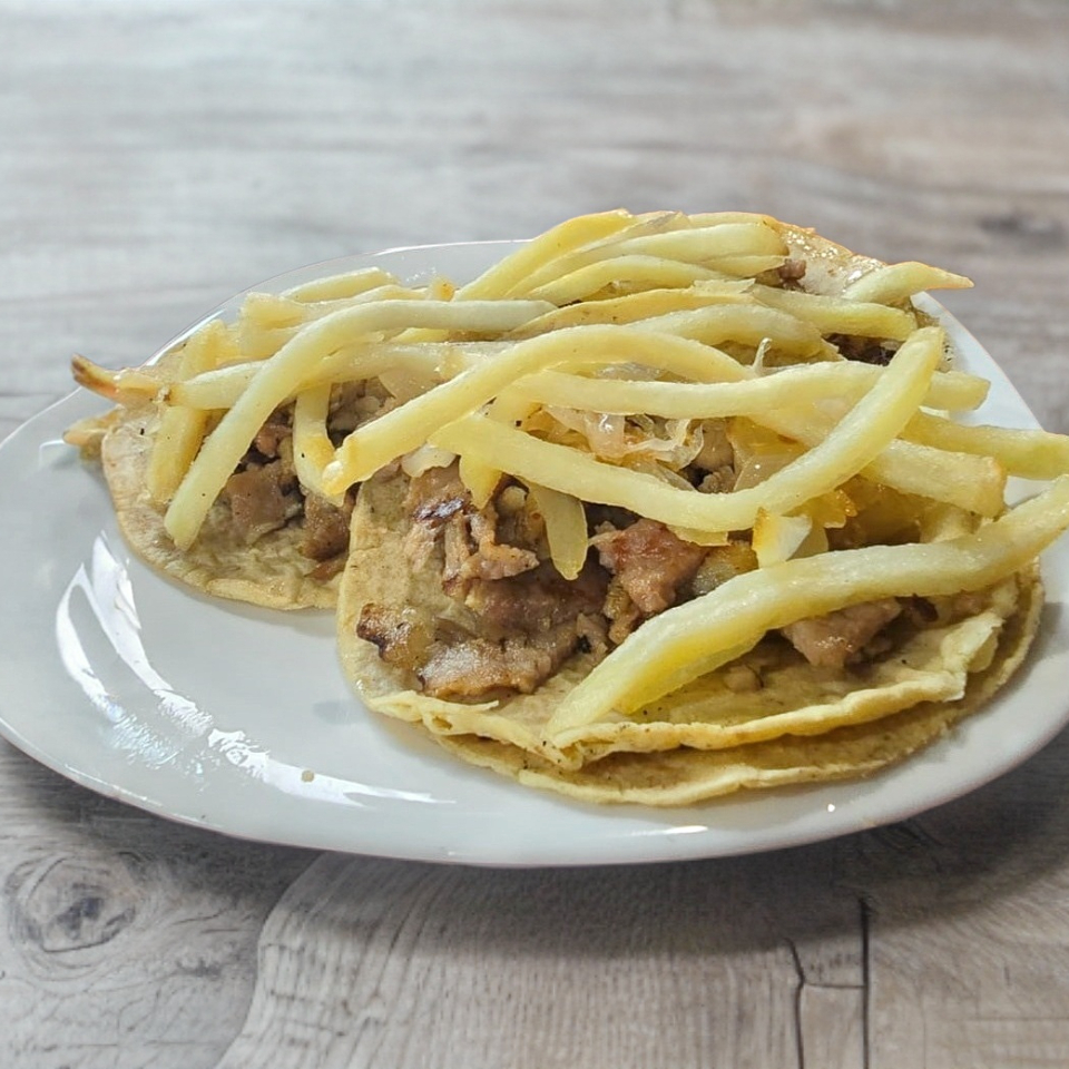 1 Gringa doble tortilla de harina con tu carne a escoger y queso, acompañado de papas (sujeto a disponibilidad) y salsa.