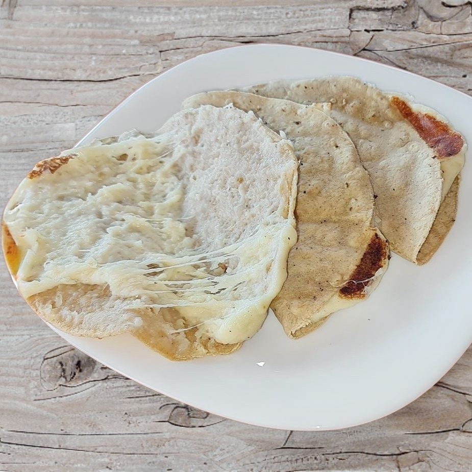 Tortilla de maíz con queso ranchero.