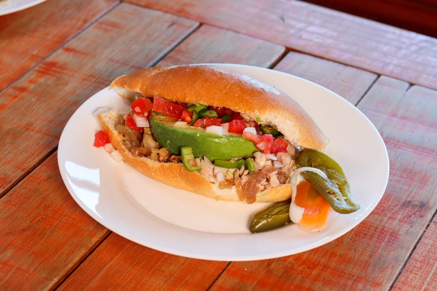 Pan tipo bolillo con carnitas a elegir tu preferido