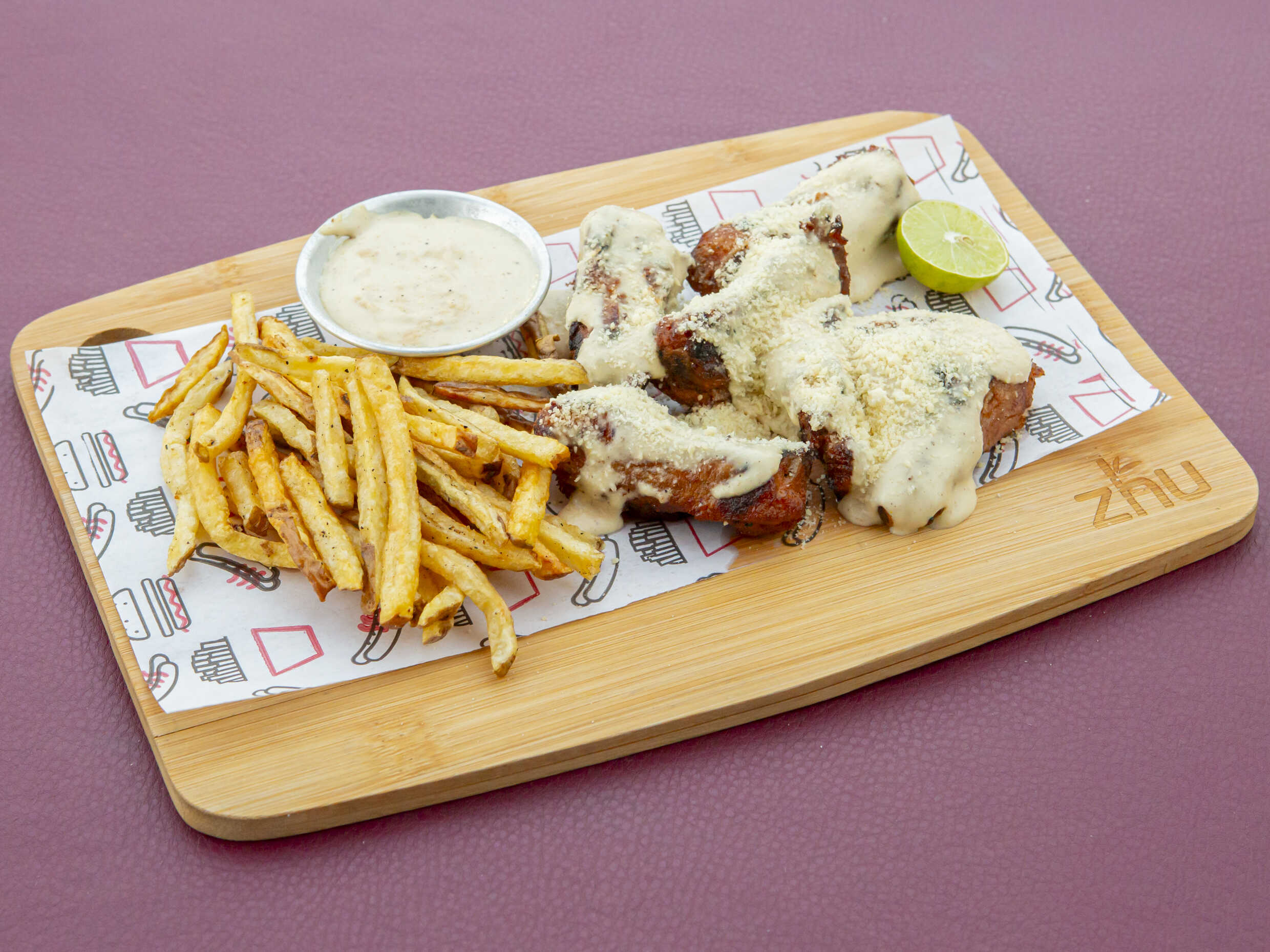 Ribs acompañadas de papas con Salsa a escoger y ranch.