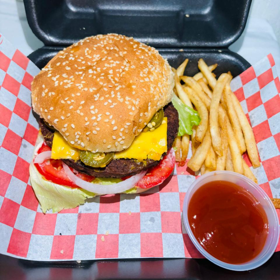 Deliciosa carne de res, queso amarillo, jitomate, cebolla, lechuga, mostaza, mayonesa, capsut, porcion de papas, jugosidad y sabor.