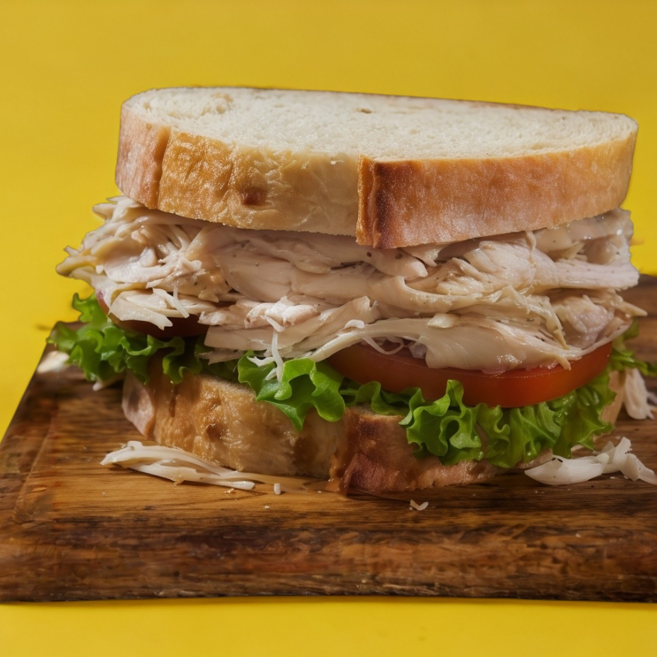tres piezas de pan, jamón, queso, aderezos y verdura