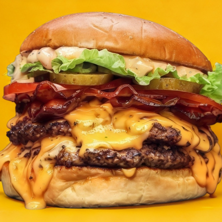 Carne de la casa , Queso tipo Americano , Aderezos y vegetales