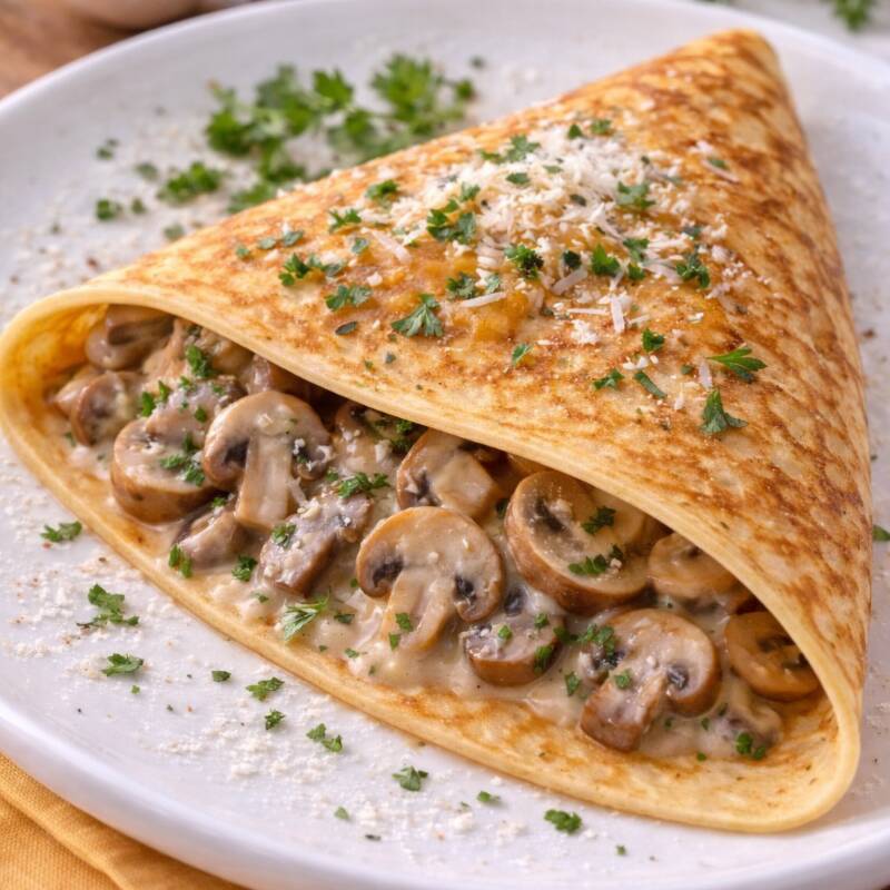 Crepa a base de harina de trigo Jamon de Pavo,Champiñones,Queso Manchego