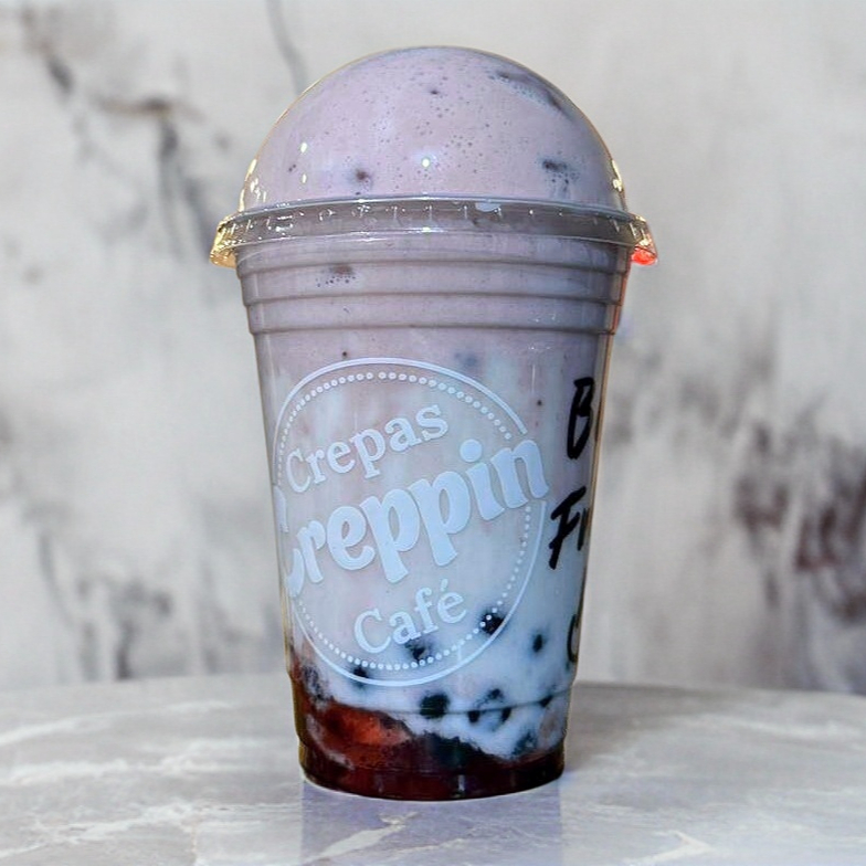 Bebida a base de leche y taro con tapioca, elige si es fría o frapeada.