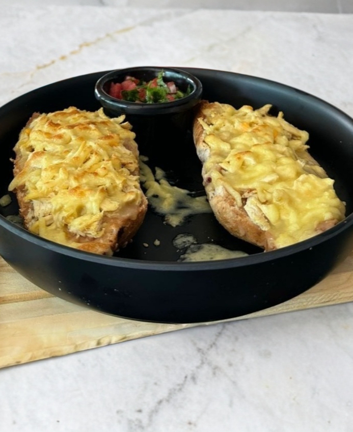 Escoge tu proteina favorita con queso manchego, Jitomate, Lechuga y Cebolla.