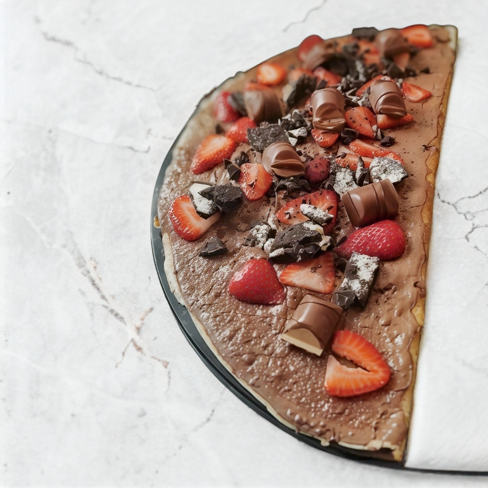Postre de harina de trigo, nutella, fresa, plátano, kinder delice.