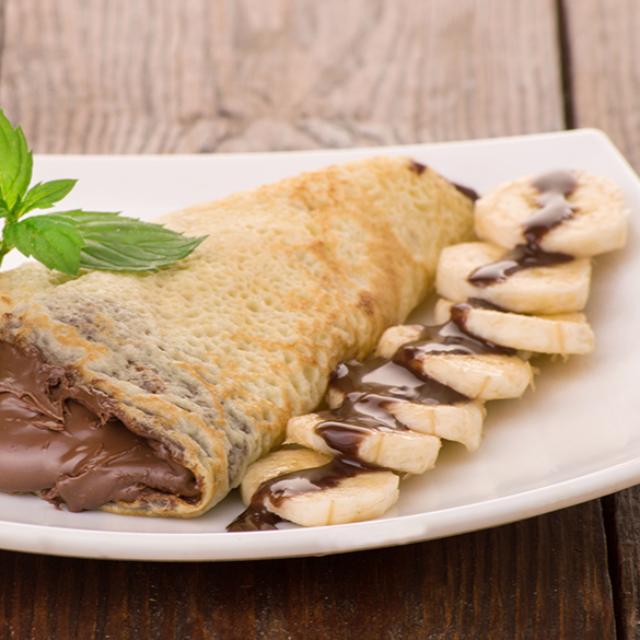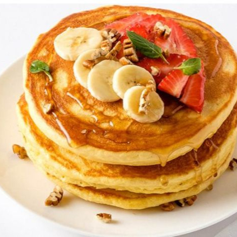 Hotcakes con miel Maple y mantequilla , o mermelada acompañados de fruta