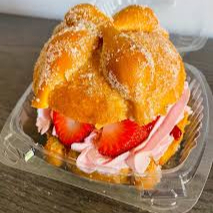 delicioso pan de muerto relleno de crema batida y fruta a tu eleccion