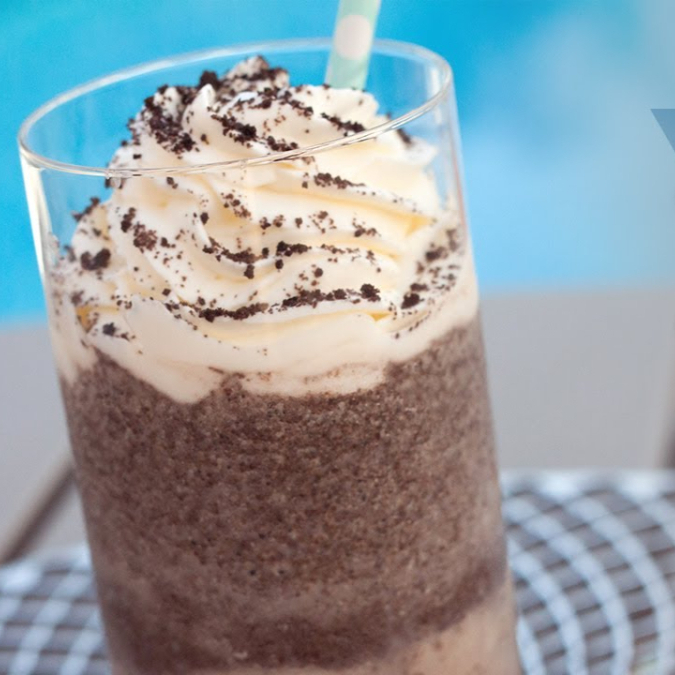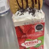 deliciosas fresas congeladas con crema batida y una galleta maria y granillo