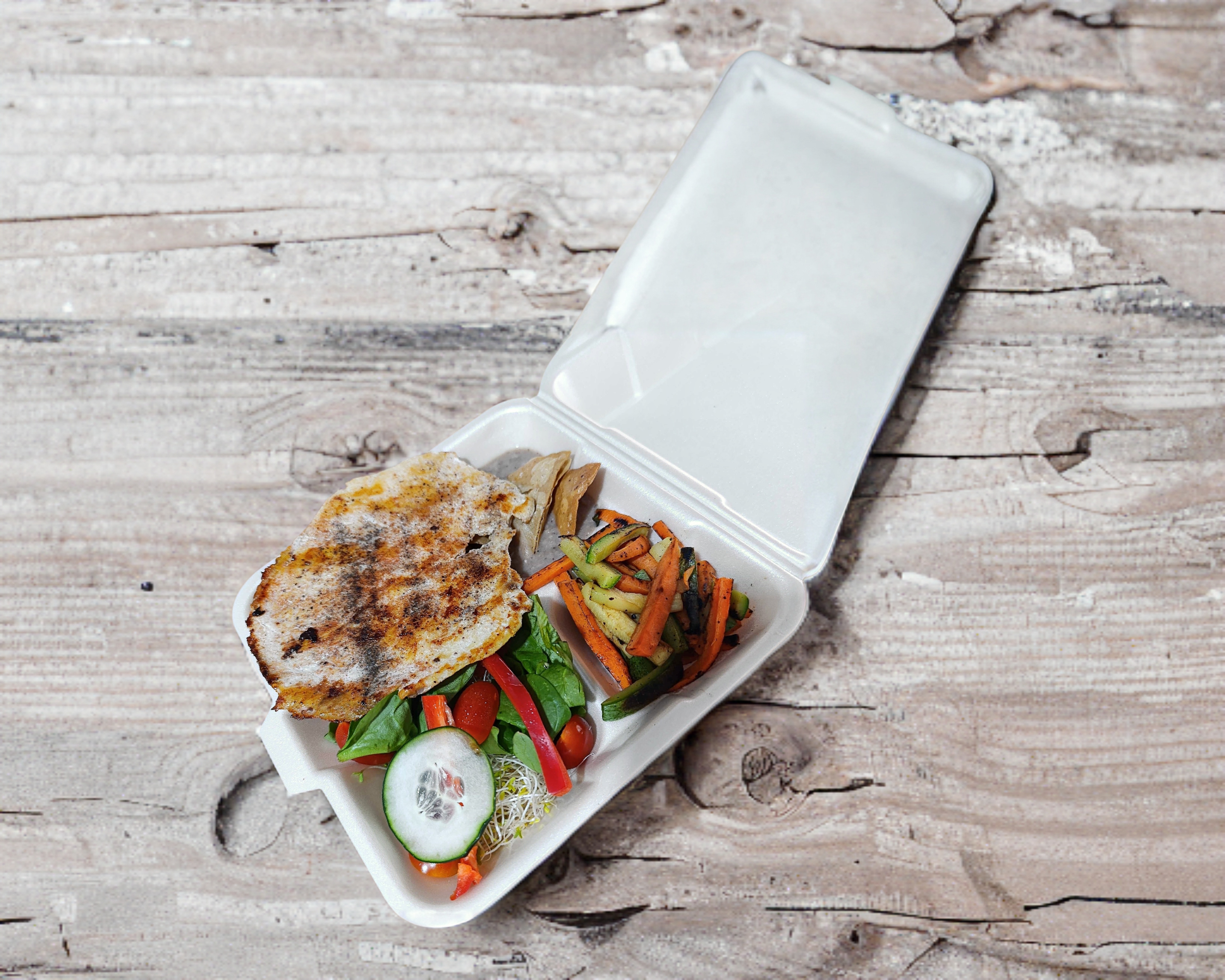 Pan de caja artesanal, 150 gr de pechuga de pollo, lechuga, jitomate, pepino y pimientos