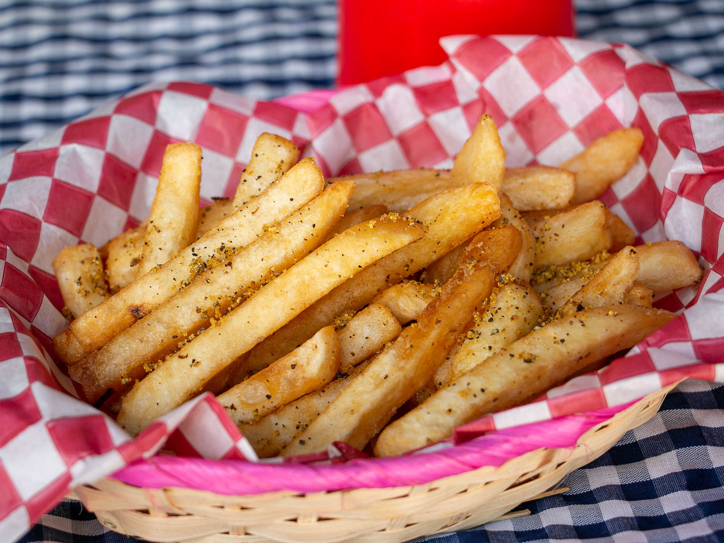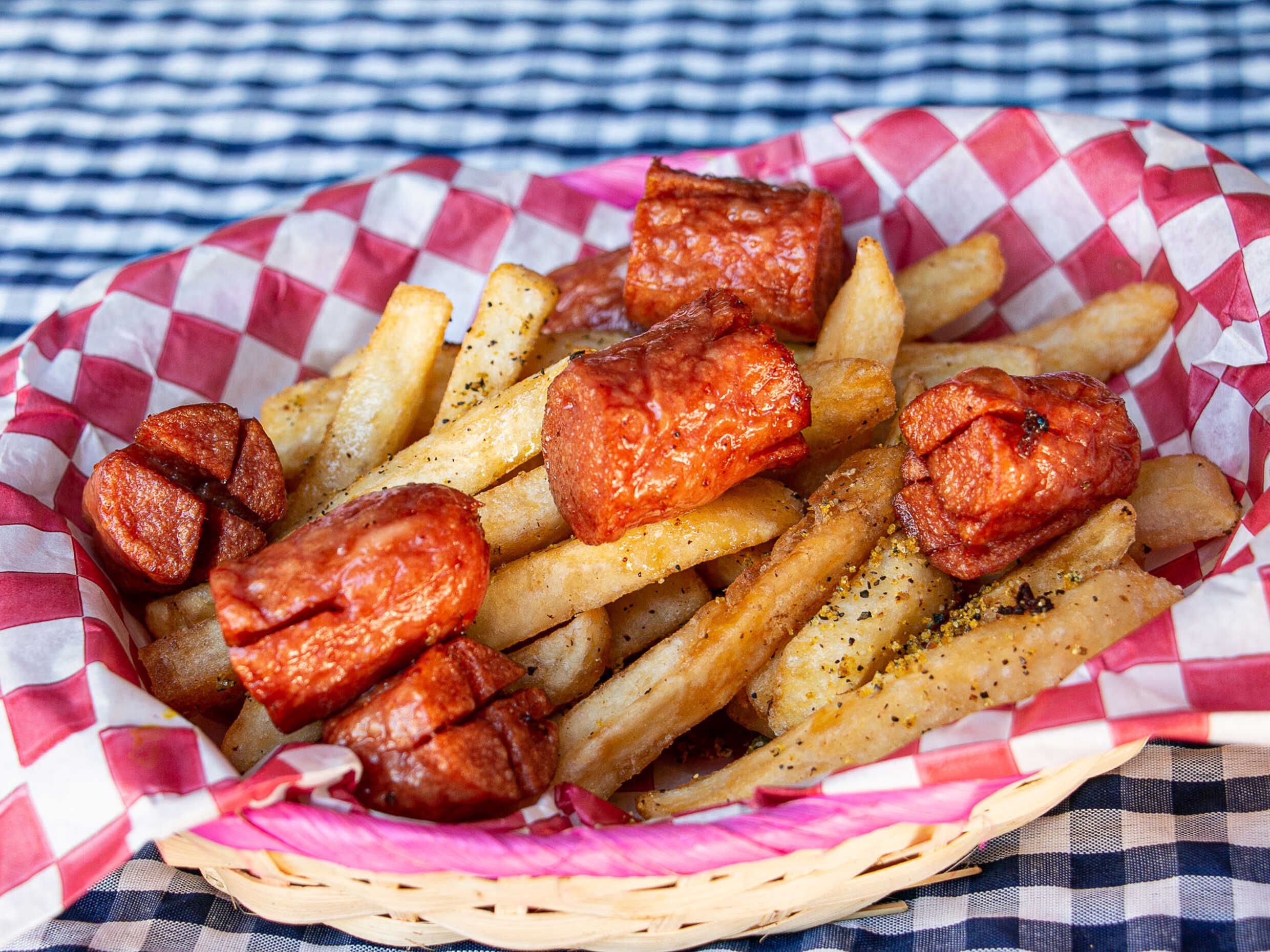 Deliciosas papas a la francesa más salchichas en forma de pulpitos fritos.