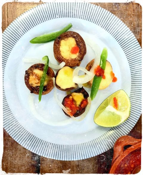la cabeza del champiñon rellena de queso