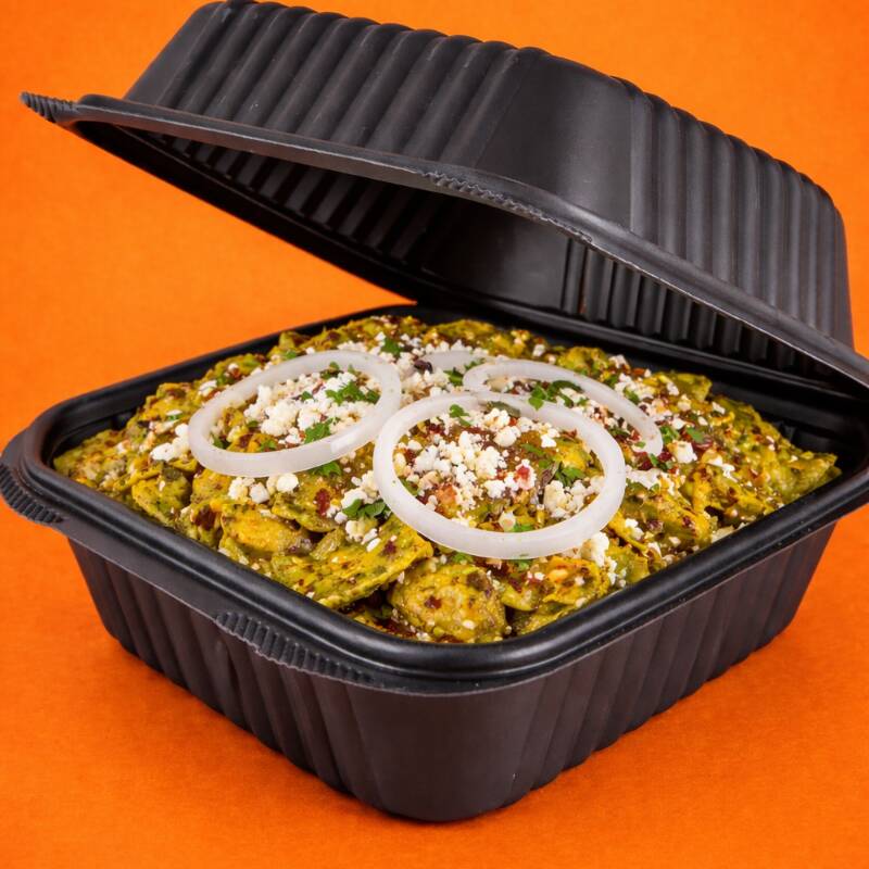 Chilakiles al gusto con salsa verde,queso manchego,crema,cebolla blanca y cilantro,acompañados con 80 gramos de la proteina de tu preferencia