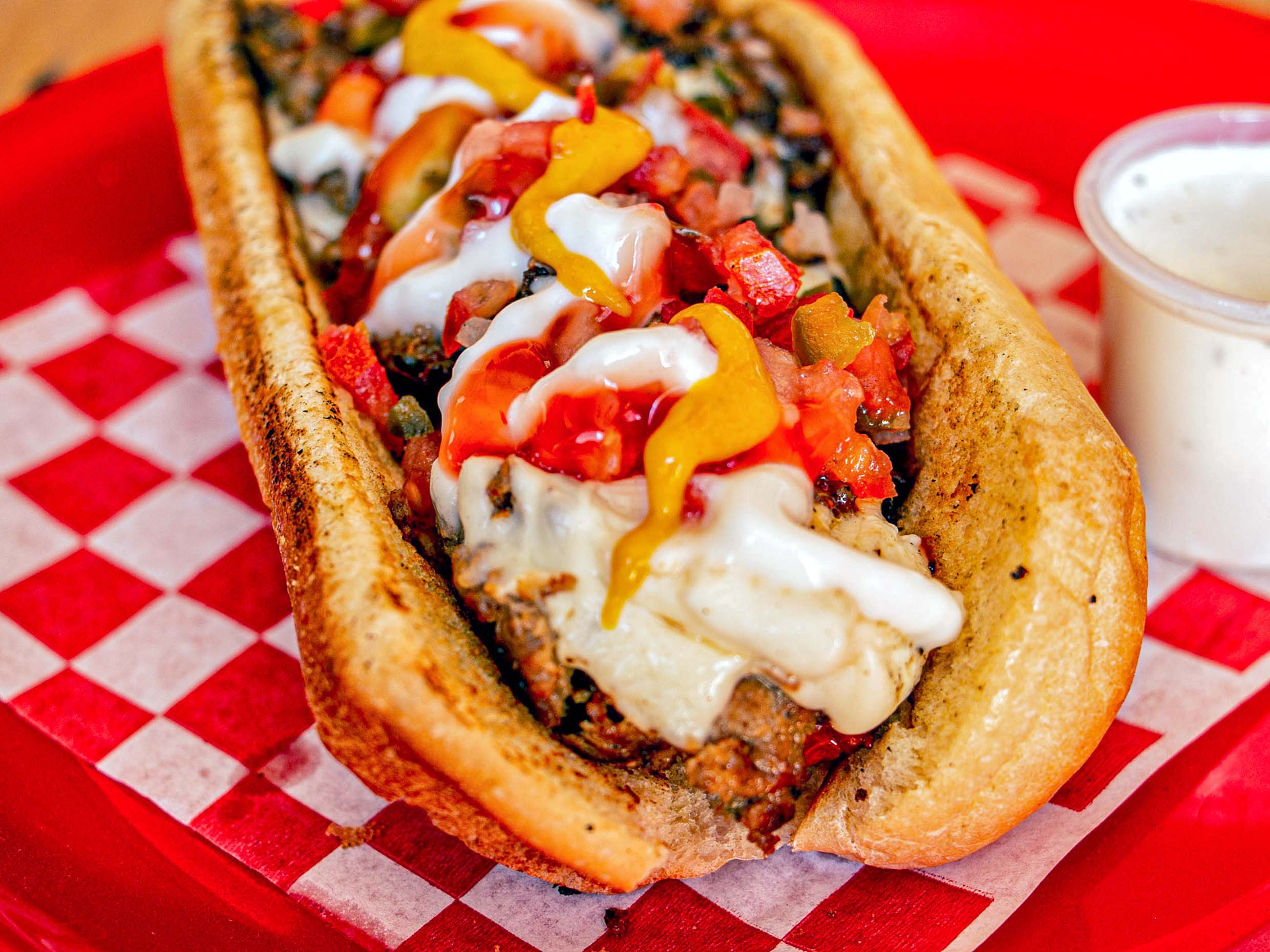 Carne de arrachera, salchicha para asar con salsa habanero,tocino y queso fundido