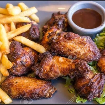 15 Alitas + 1 Papas a la francesa (250 g.) + 1 vegetales (100 g.) + 2 combinaciones de salsas