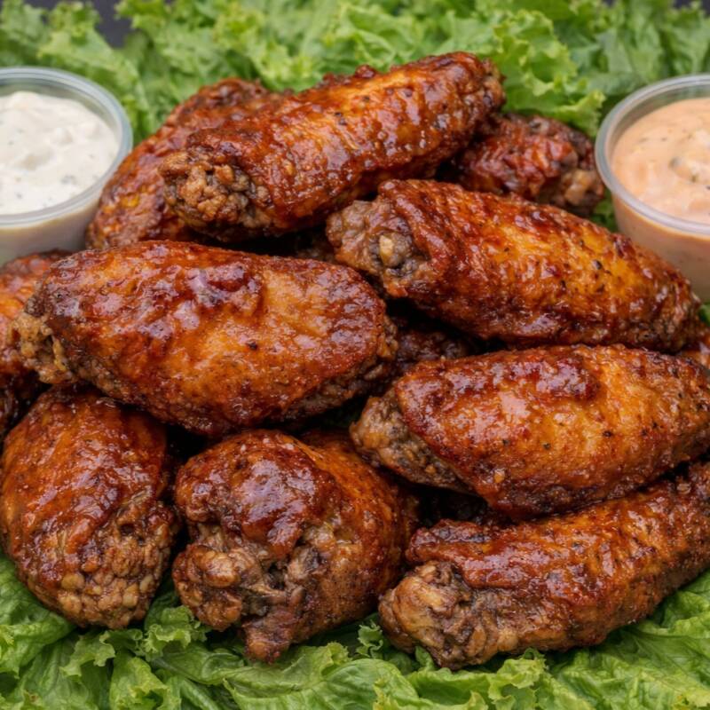 Alitas sobre una cama de lechuga con 2 aderezos a elegir