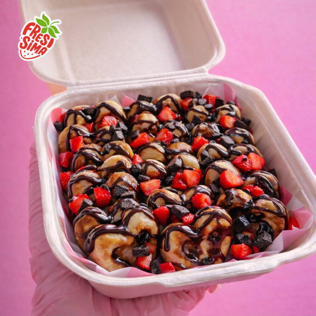 Deliciosas fresas con crema de la casa, acompañadas con toppings de tu eleccion.