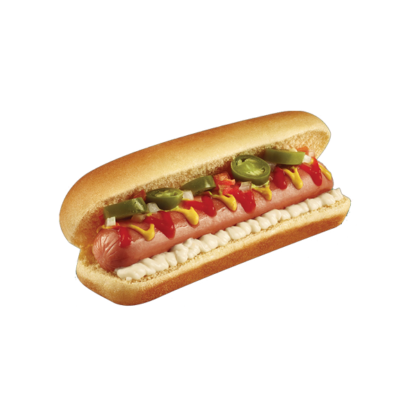 Hot Dog con salsa de tomate, queso y pepperoni