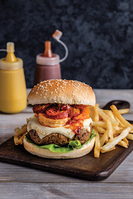 Hamburguesa hawaiana con tocino y queso