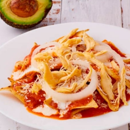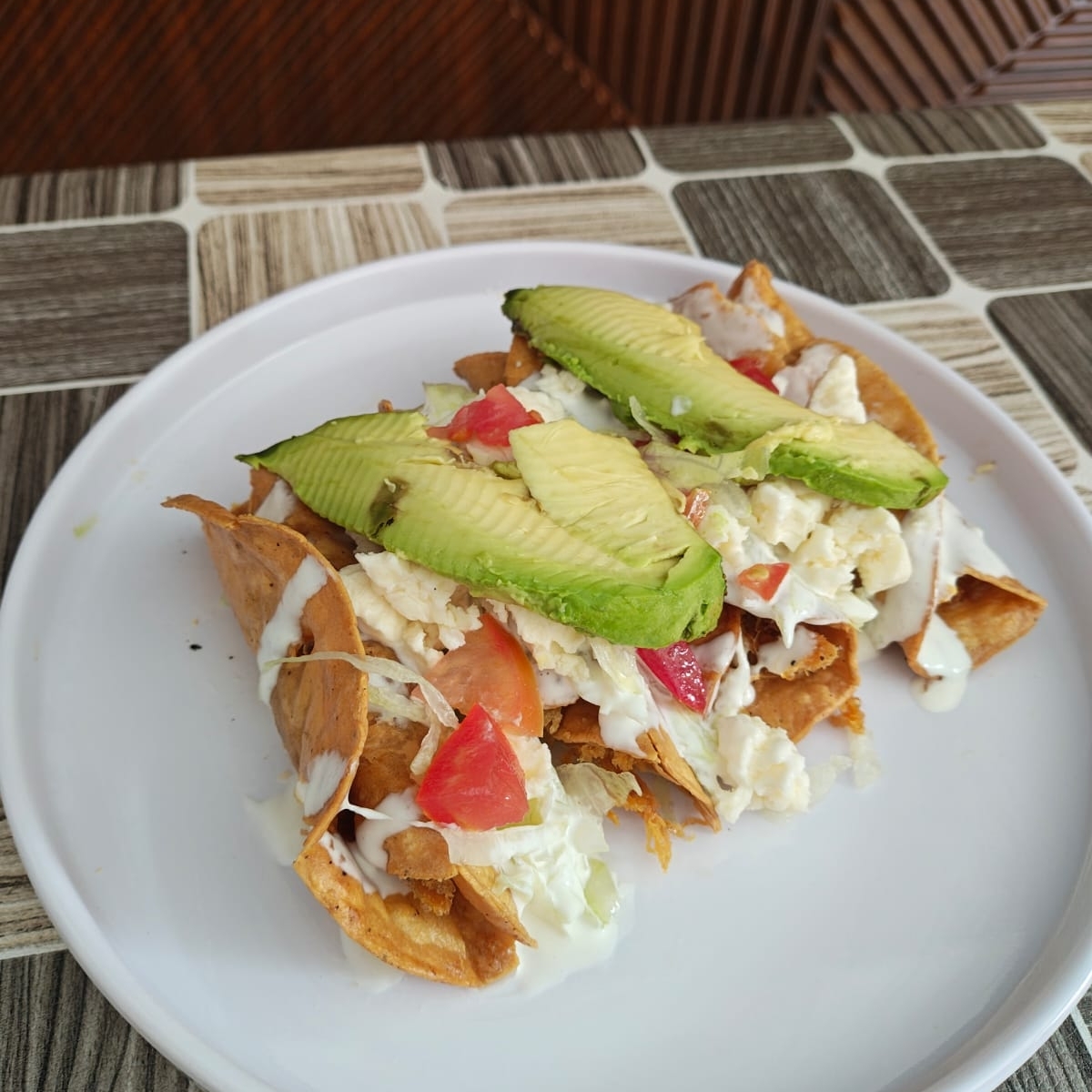 130grs de totopo, salsa roja, queso, crema, cebolla, lechuga todo va aparte para que no se aguaden