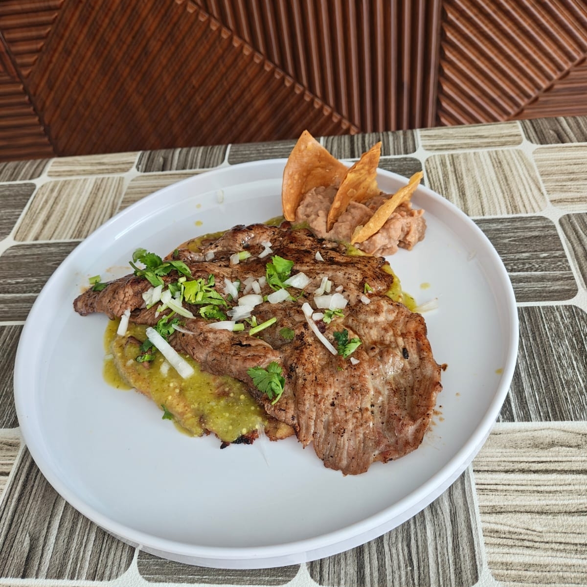 MASA RELLENA DE FRIJOL CON SALSA Y BISTEC