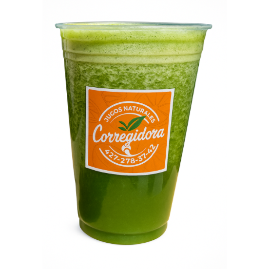 Nuestro jugo verde de 500 ml combina naranja, piña, perejil, apio, nopal y espinaca, una mezcla deliciosa y equilibrada que ayuda a desintoxicar el cuerpo, mejorar la digestión y fortalecer el sistema inmunológico. Refrescante, natural y lleno de energía para sentirte ligero y revitalizado durante el día.