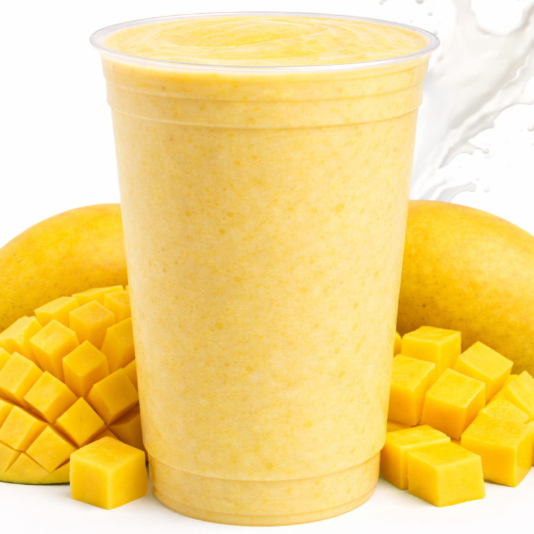 Licuado de mango preparado al momento con fruta natural, leche, canela y vainilla, sin concentrados ni polvos. Puedes hacerlo grande (900 ml) o agregar ingredientes como frutos rojos, nuez, almendra, avena o arándano, además de elegir tu tipo de leche y endulzante.