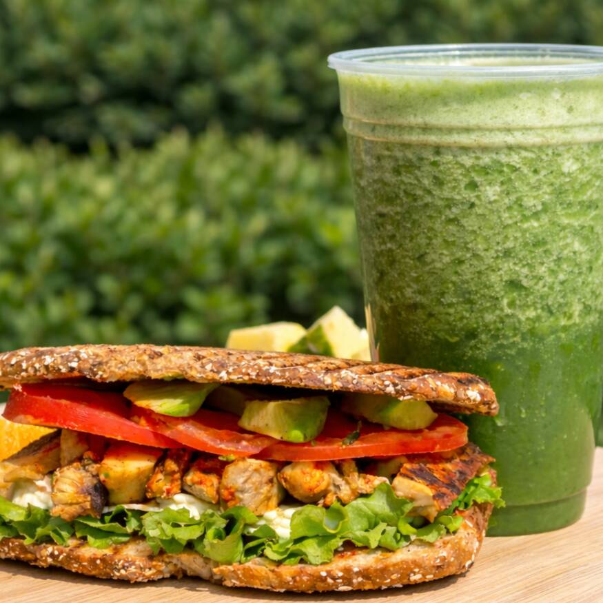 Verde Especial🥒🍍🥬 (Base de Pepino)*1 + Sándwich De Pechuga de Pollo Asada*1