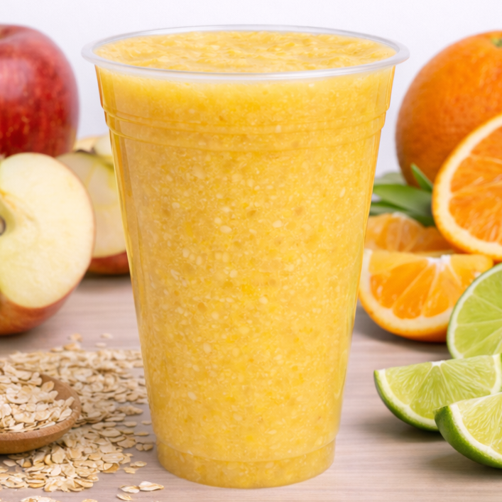 Base fresca de naranja y manzana con la opción de agregar avena para mayor saciedad o limón para un toque más ligero. Elige cómo quieres disfrutarlo y hazlo perfecto para tu momento. 500ml