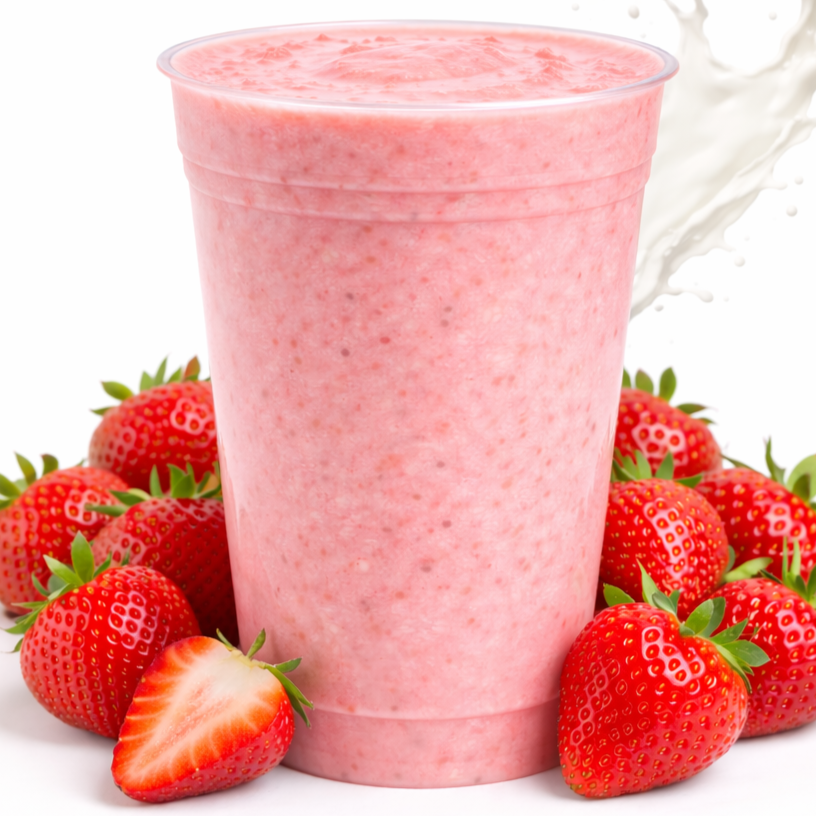 Licuado de fresa preparado al momento con fruta natural, leche, canela y vainilla, sin concentrados ni polvos. Puedes hacerlo grande (900 ml) o agregar ingredientes como frutos rojos, nuez, almendra, avena o arándano, además de elegir tu tipo de leche y endulzante.