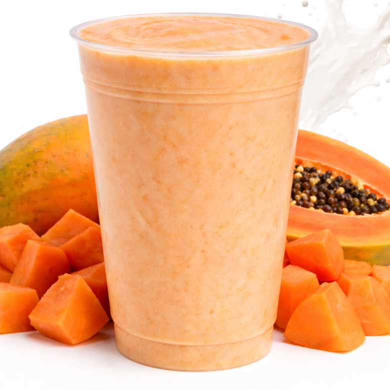 Licuado de papaya preparado al momento con fruta natural, leche, canela y vainilla, sin concentrados ni polvos. Puedes hacerlo grande (900 ml) o agregar ingredientes como frutos rojos, nuez, almendra, avena o arándano, además de elegir tu tipo de leche y endulzante.