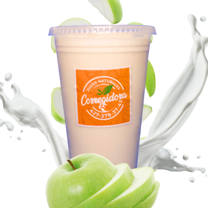 Licuado de manzana preparado con leche, cremoso y naturalmente refrescante. Puedes personalizarlo con granola, nueces, almendras o arándanos.