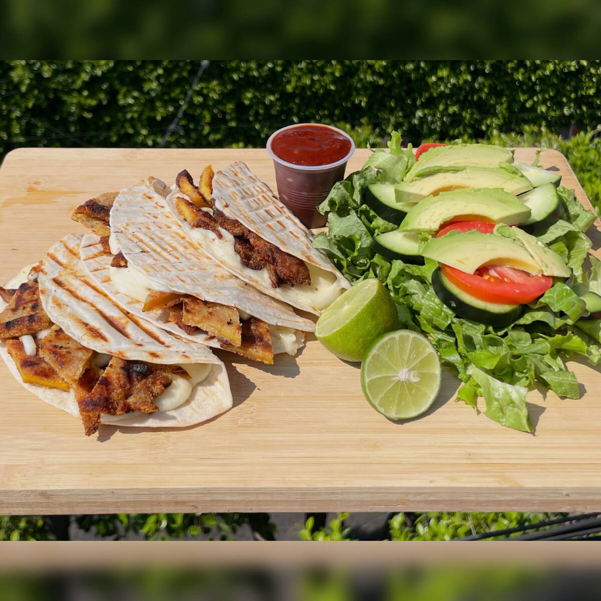 Disfruta nuestras quesadillas preparadas con suave tortilla de harina y el queso de tu preferencia: Oaxaca, panela o manchego, acompañadas de jamón o pechuga de pavo. Incluyen una fresca ensalada a elegir entre lechuga, pepino, espinaca y jitomate. Una combinación deliciosa y ligera, ideal para cualquier momento del día.